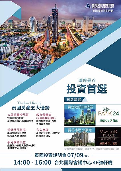 泰國房地產投資說明會~洽詢專線0952190219塗先生
