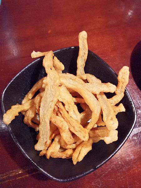 有點像炸甜不辣,但酒聚的手工黑輪片酥脆帶有嚼勁的,不會有油耗味只有淡淡的旗魚香氣。