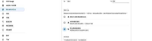 4、可直接將預設行為設為「禁止網站傳送通知」,該選項意即關閉所有網站通知,若只想關閉特定網站,可下滑至允許通知欄位,找到想關掉的網站單一封鎖。